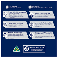 Chicken Meal, Rice; Sorghum; Rice Flour; Chicken Fat; Dried Beet Pulp; Natural Flavour (Chicken); Sunflower Oil; Turkey Meal; Vitamins and Minerals; Amino Acids (Incl. Arginine, Taurine and Methionine); Salt; Inulin; Antioxidants; Green Lipped Mussel Powder.