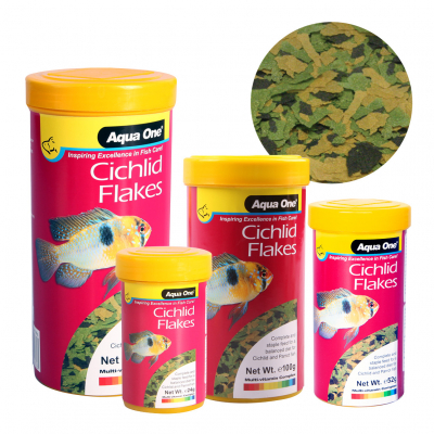The Aqua One Cichlid Flakes are a great basic diet for all omnivorous/herbivorous Cichlid Species. They provide just the right amount of protein to ensure proper growth and fin development. The Astaxanthin will ensure brilliant colours and striking pattern as well as guard the fish from disease since it is a well known powerful antioxidant. The multi-vitamin complex will provide the fish with all the vitamins they need for a fully functional immune system. All Aqua One food is made from the highest quality ingredients to ensure maximum digestibility to reduce the amount of waste produced.