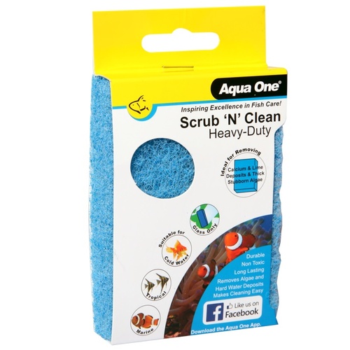 This is a large coarse Aqua One Scrub 'N' Clean heavy duty algae cleaning pad. This pad removes algae and hard water deposits. It can be used in cold water, tropical or salt water/marine aquariums.