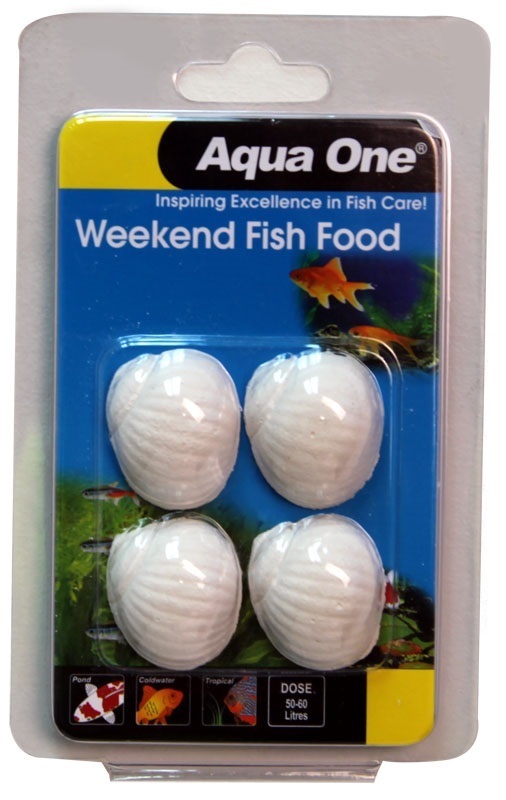 The 20 gram Aqua One Holiday Fish Food Block is a great way to ensure your fish are well cared for while you're away. The blocks dissolve slowly, releasing small particles of food so your fish is fed regularly over time.
