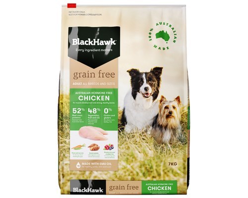 This is a 7kg bag of Black Hawk Grain Free Adult Chicken Dog Food. Black Hawk Professional Dog Food is made with special ingredients to ensure your dog stays healthy throughout their life. Black Hawk premium pet food is 100% Australian made.
