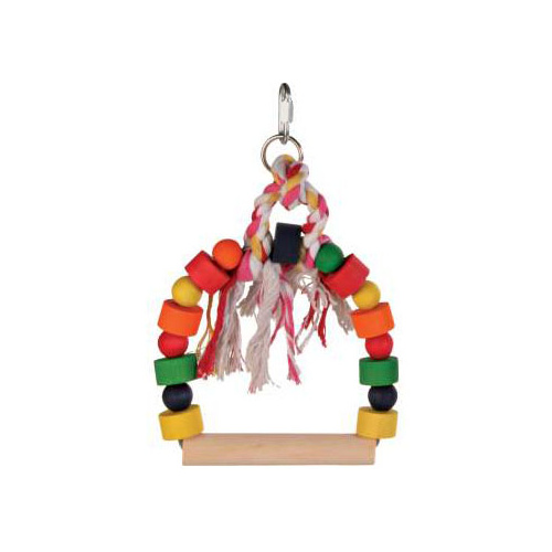 Birds love to swinging and bright colours! This bowed bird swing combines 2 of the things birds enjoy most and makes it into this great bird toy. Birds can swing, chew and keep themselves amused with this product. It measures 13cms wide and hangs 19cms. It is suitable to use for Budgies, Canaries, Finches, Small Parrots etc. It is made by Trixie, who are known as one of the leaders in pet products and accessories.