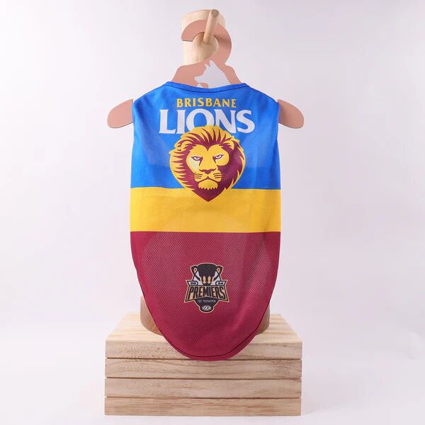 This is a Brisbane Lions AFL Dog Jersey. It is officially licensed by the AFL. This jersey is made from a light weight and breathable material, suitable to be worn all year round. Become the ultimate supporter for your team and have your pet match you with this Brisbane Lions AFL Dog Jersey. This dog shirt/jersey comes in 5 sizes.