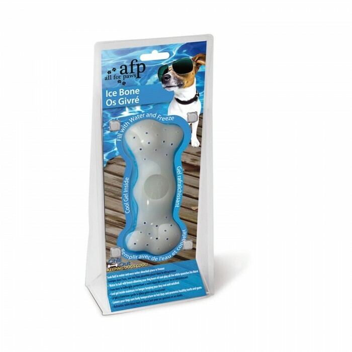The Chill Out Ice Dog Bone keeps your pooch cool while he chews with the All For Paws Chill Out Ice Bone. To use simply soak the absorbent bone in water, then freeze. The special gel core keeps the bone cool for hours so that cold water is dispensed with every chew.