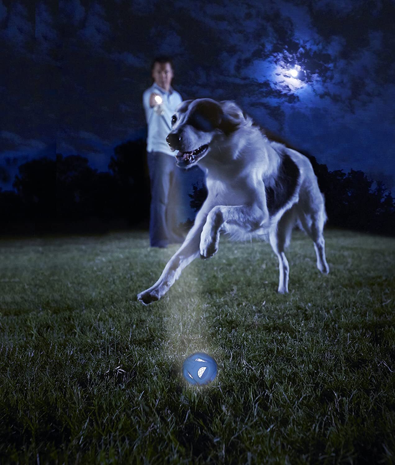 The Pro LX Max Glow Chuckit Dog Ball launchers are designed specifically for safety and fun in the dark! includes integrated high-intensity LED Flashlight to light your path and highly reflective fetch ball visible from 50+ yards away without needing batteries in the ball! Includes Pro LX Fetch ball with reflective 3M core.