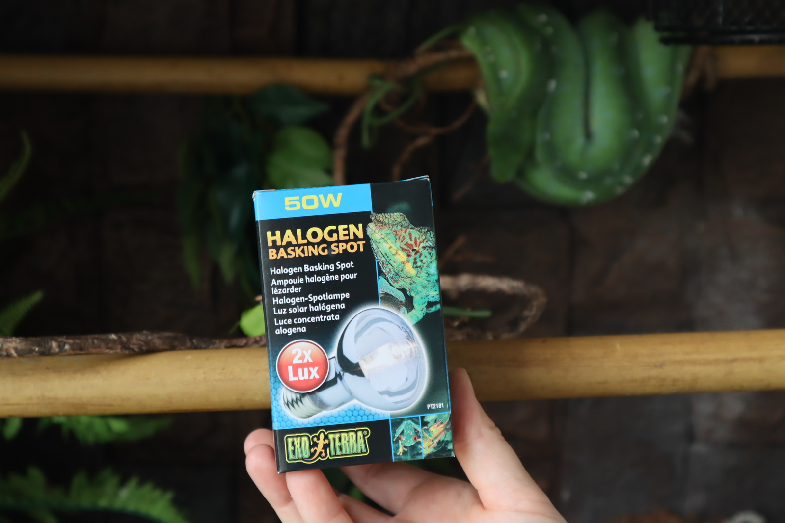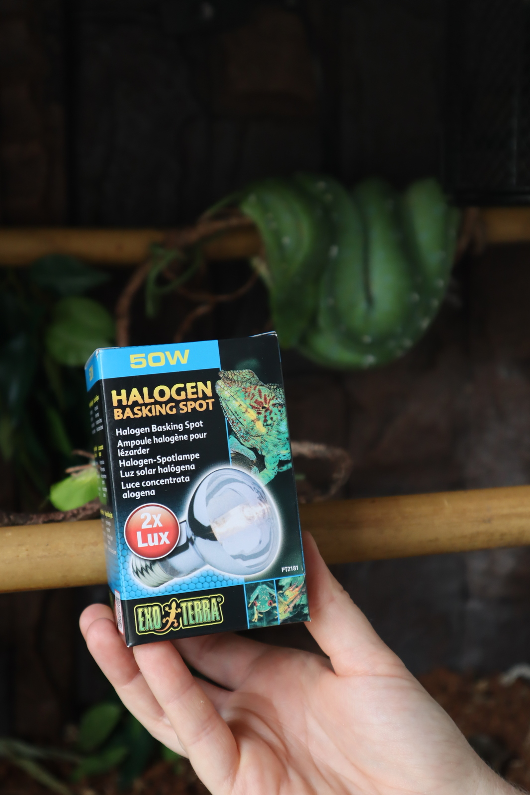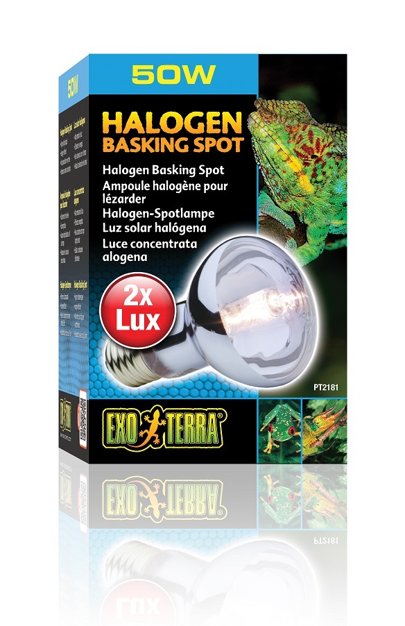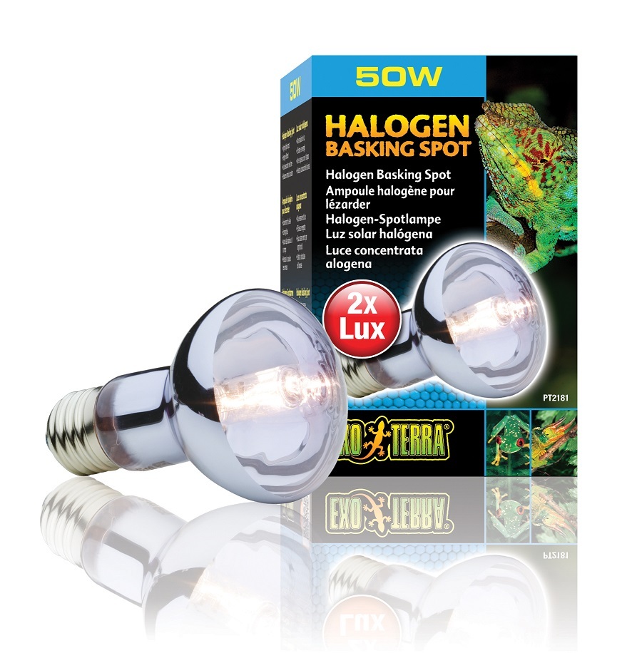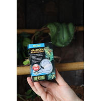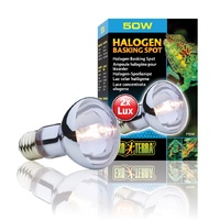 This is a 50 Watt Exo Terra Halogen Basking Spot Lamp for reptiles. This basking bulb is a broad-spectrum daylight bulb for reptiles such as lizards and frogs. This energy efficient globe enriches your reptile's colour through neodymium. Use with a Night Heat Lamp or Infrared Basking Spot for a 24-hour cycle.