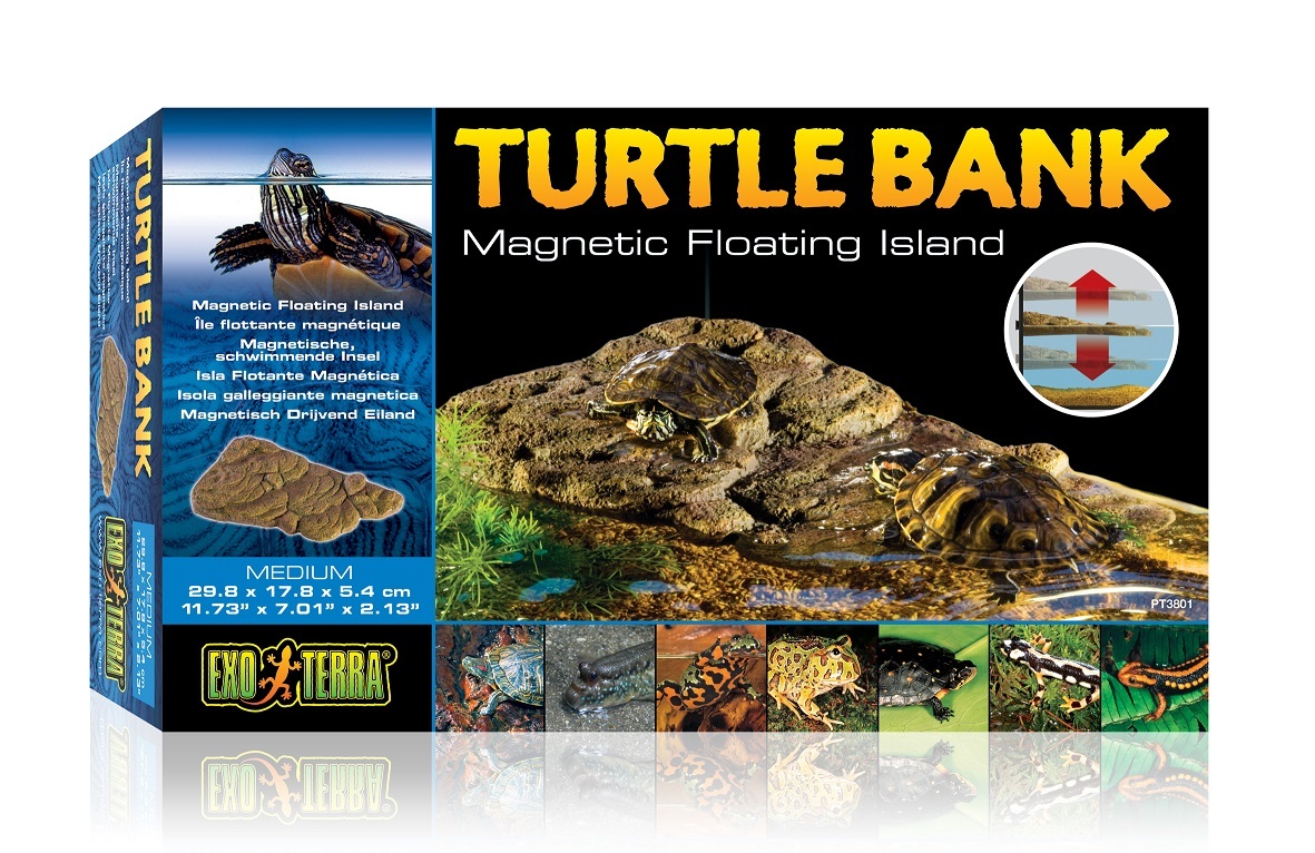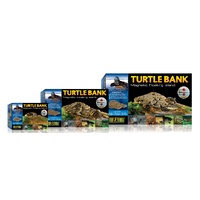 This is a medium Exo Terra Bank magnetic floating island. The medium turtle bank is 29.8cm x 17.8cm x 5.4cm. The submerged ramp makes it easy for your turtle to get on and off the bank. The magnets keep the floating island in position. Its look makes it look like your turtles natural habitat. Turtle banks are perfect of basking or terrestrial area for turtles.