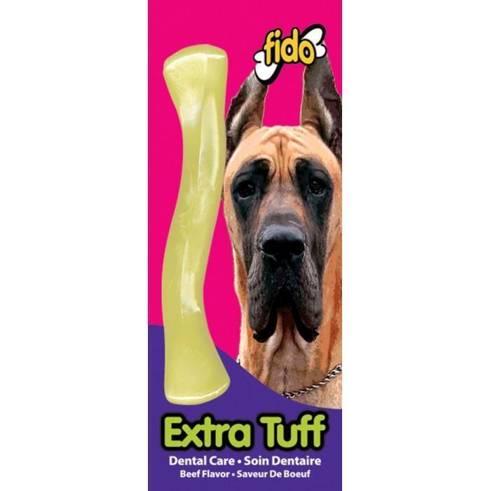 Mid Fido Extra Tuff Bone Beef Flavour is a durable challenging chew toy for dogs. The mid Fido bone measures 13cm. Fido Dental Chew Bone has been designed to reduce plaque formatation in your dog's mouth.