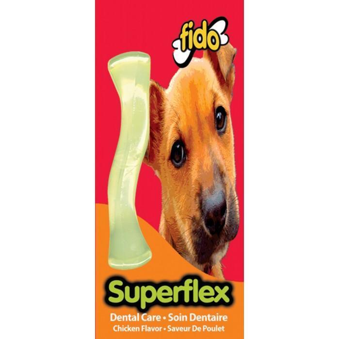 Medium Fido Superflex Bone Chicken Flavour is a flexible, tough and tender chew toy for dogs. The large Fido bone measures 22cm. Fido Dental Chew Bone has been designed to reduce plaque formation in your dog's mouth.