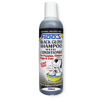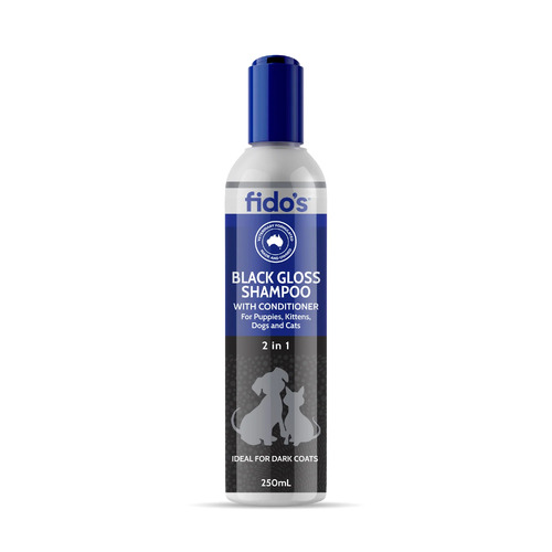 250ml Fido's Black Gloss Shampoo with Conditioner is for dogs with black and dark coloured coats to enhance their colours. It is a soap free and pH balanced shampoo. Buy Fido's Black Gloss Shampoo with Conditioner online.