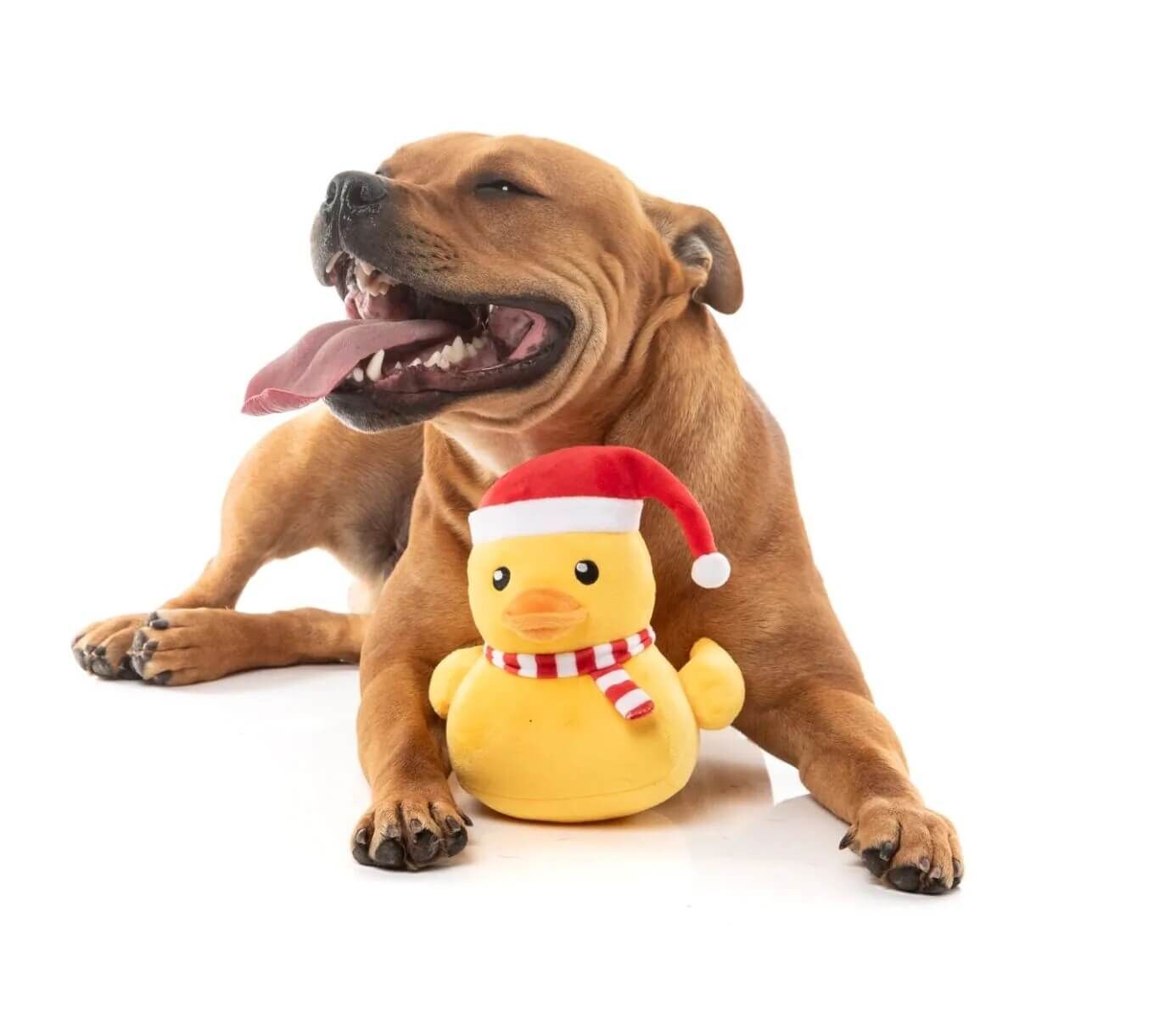 The FuzzYard Festive Waddles Christmas dog toy will make a great festive gift this holiday season. This plush Christmas toy comes with a squeaker inside for extra fun. It is made of 100% polyester fibre and is machine washable.