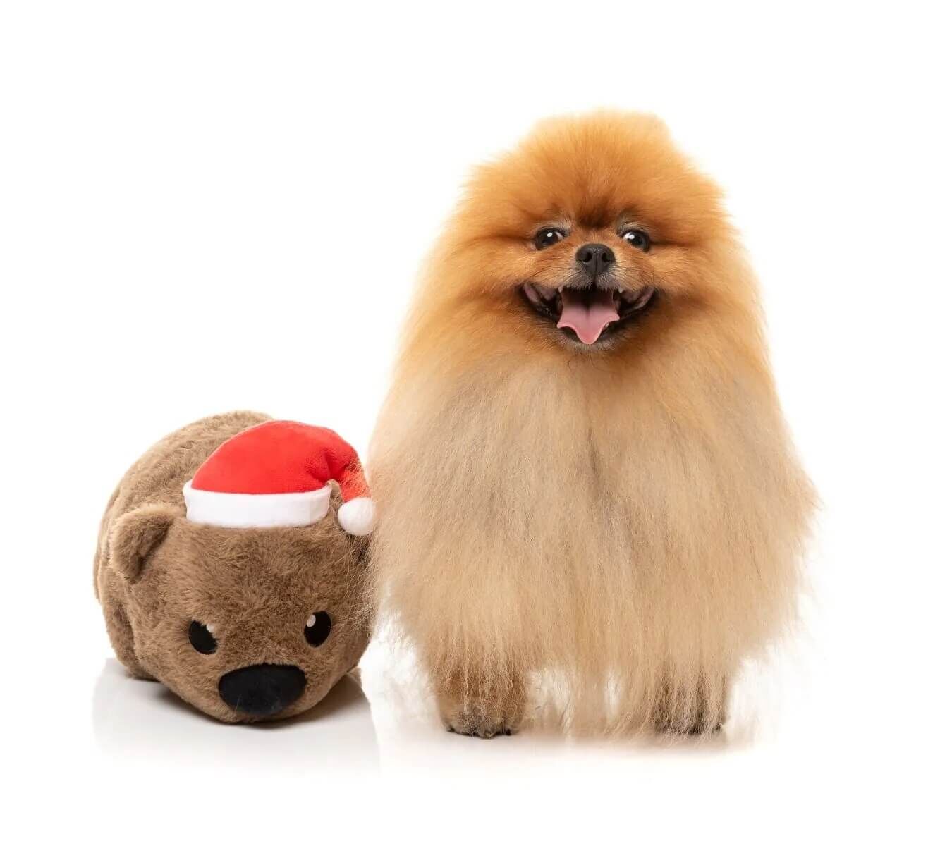 The FuzzYard Small Wallace Wombat Christmas dog toy will make a great festive gift this holiday season. This plush Christmas toy comes with a squeaker inside for extra fun. It is made of 100% polyester fibre and is machine washable.