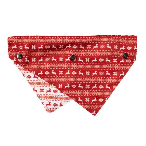 This is a Small/Medium Reindeer Fairisles Dog Bandana by FuzzYard. This bandana can be flipped giving it two different looks. It is made of polyester and sure to get your pet into the Christmas spirt.