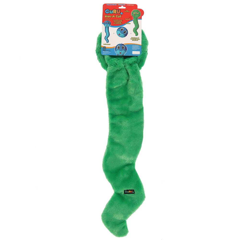 The GURU Hide-A-Tail Green Snake Extra - Large (4x22x91cm) is a plush snake toy with a hidden tail, designed to keep dogs mentally and physically stimulated through interactive play.