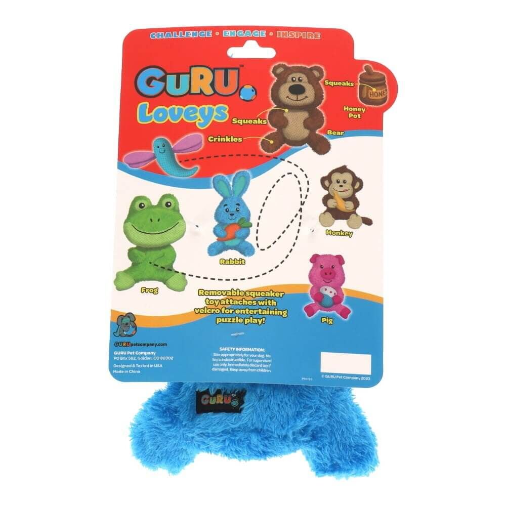 The GURU Loveys Rabbit - Medium (9x17x26cm) is a soft plush toy that provides comfort and play. Its gentle texture engages dogs and encourages mental enrichment during chewing or cuddling sessions.