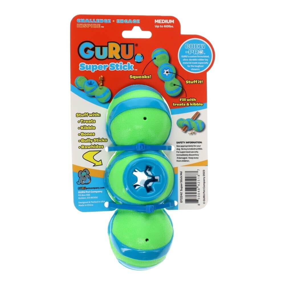 The GURU Super Stick (18.4x6.9x6.4cm) is a plush toy designed for interactive play and mental stimulation. Its stick shape encourages problem solving, chewing, and fetch activities.