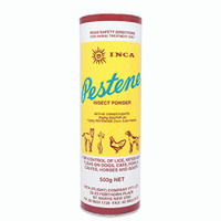 This is a 500g Pestene Insect Powder. The Pestene Insect Powder is a no-fuss solution to protecting your pet against most mites and parasites. It is effective against lice, mites and fleas in poultry, dogs, cats, horses, calves and goats. It comes in a shaker tube which makes it easy use. Please note this is not to be used on kittens and puppies under 3 months old.