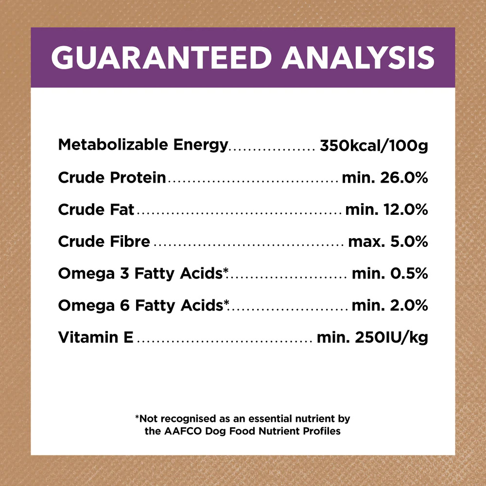 - Flaxseeds and salmon oil rich in omega-3 & 6 to maintain skin and coat health