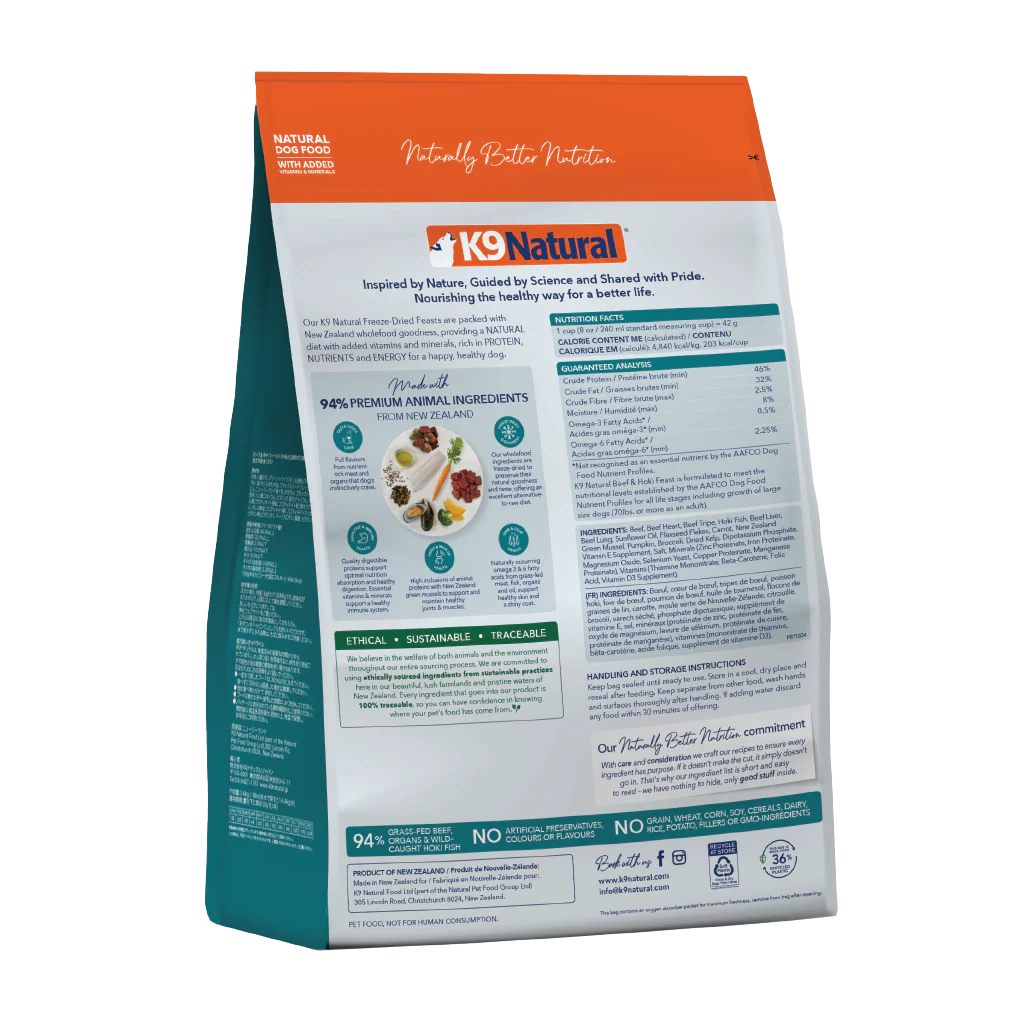 K9 Natural Freeze Dried Dog Food - Beef & Hoki Feast - 1.8kg