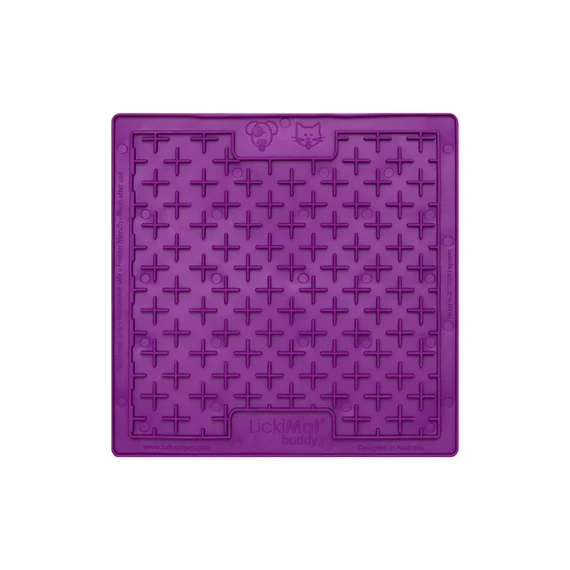The Buddy LickiMat is a way to entertain your dog with soft food and help with their oral hygiene. Spread your pet's favourite treat over the LickiMat for them to lick it off. The process of licking this off will stimulates your pet's mind and keep them entertained. The licking of the mat will help scrape bacteria and undigested food from your dogs tongue, which will help to promote better smelling breath. It will also produce saliva into your pet's mouth that helps to clean their tongue, teeth and gum. The LickiMat is 20cm x 20cm and is made of non-toxic material.