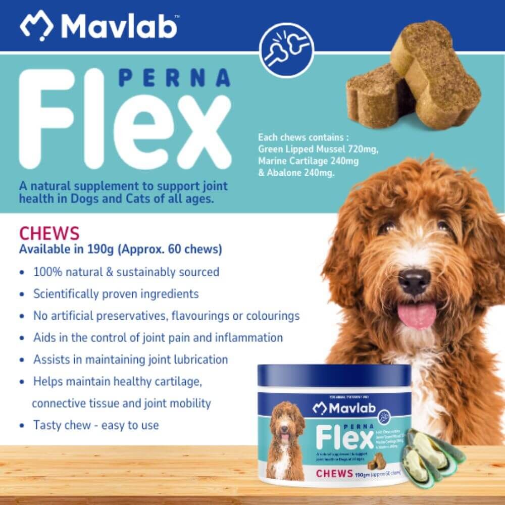 Pernaflex Chews are a natural joint health supplement designed to support mobility, flexibility and overall joint function in dogs. Made using marine-sourced ingredients, these tasty chews help maintain healthy cartilage and joint lubrication, making them ideal for active dogs, ageing pets, or dogs needing extra joint support.