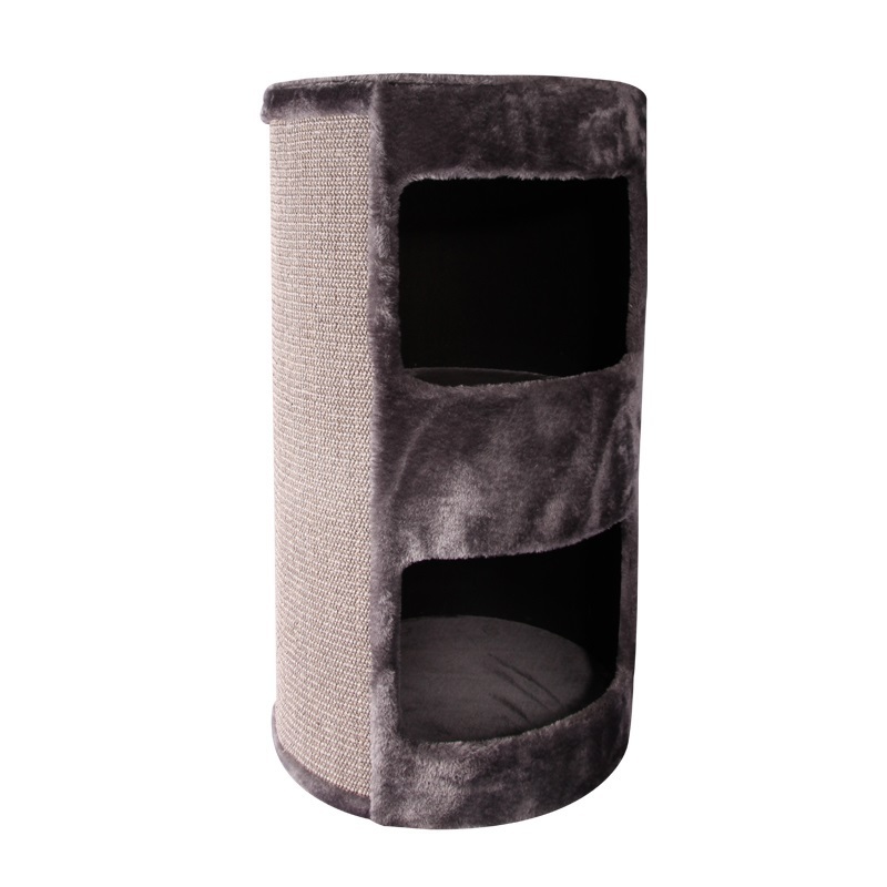 This is a Grey Cat Scratching Tree Post with Bed & Double Hide by Pet One. It has a 40cm diameter x 70cm high. It is suitable for use with adult cats & kittens. It has a range of textured materials that allow you cat to scratch, play or rest. It uses an super soft plush material that your feline will love to snuggle into.