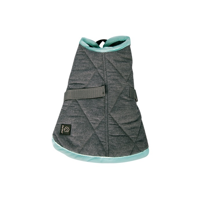 This is a Grey/Turquoise Pet One NightSleeper dog coat. The NightSleeper coat is best suited for indoor use. It is made of a soft quilted material which is warm and cosy. The body straps are adjustable for a snug fit for many sizes of dogs.