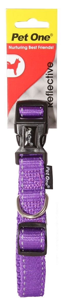 Pet One Reflective Adjustable Nylon Dog Collar - 17-26cm (10mm) - Purple