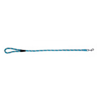 This is a 122cm long turquoise Prestige Pet Mountain dog leash. It is 13mm round and 122cm long. The rounded style mountain dog lead is made of a soft braided nylon that is comfortable on your hand when walking. The snap hooks are safely secured with strong box stitching. The hand loop is connected with synthetic leather which looks good and holds stable.