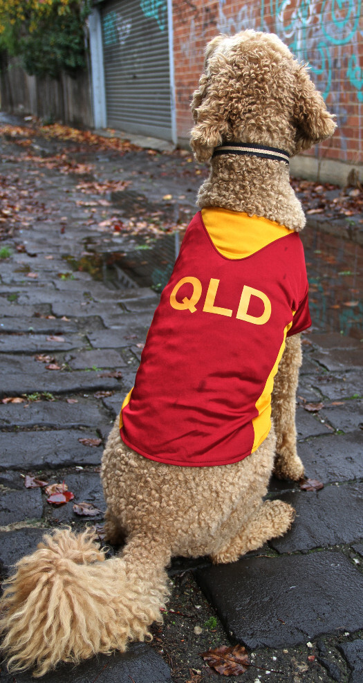 Queensland Dog Jersey for the 2014 State of Origin series. Have your dog help support QLD as they chase 9 State of Origin series in a row! This QLD dog Jersey/coat/shirt comes in 7 sizes for Chihuahuas to Labradors and all breeds in between (check sizing chart). Buy QLD State of Origin pet clothing.