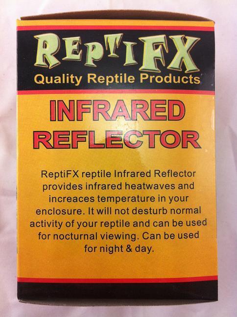 This is a Bayonet Infrared Reptile Reflector made by ReptiFX Quality Reptile Products. ReptiFX reptile Infrared Reflector provides infrared heatwaves and increases temperature in your enclosure. It will not disturb normal activity of your reptile and can be used for nocturnal viewing. Can be used for night & day.