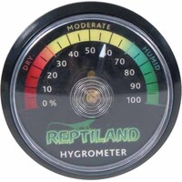 Reptile Reptiland Analogue Hygrometer is for precise monitoring of the humidity in a terrarium. Measures a range from 0 to 100% humidity. It is easy to mount due to sticker on the rear.