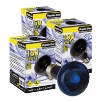 The Eddison Fitting Reptile One Night Heat Lamp is a low light heat source designed to provide a blue hue to help replicate natural moonlight conditions while providing a heat source for nocturnal reptiles. This can be used in conjunction with a Daylight Basking Lamp to replicate natural lighting conditions. Low light heat source which can be used for nighttime heating and can be alternated with day lamp.