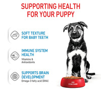 Royal Canin Maxi Puppy Pouch - 140g x 12 (Box) is a complete feed for dogs - For large breed puppies (adult weight from 26 to 44 kg) - Up to 15 months old. This formula is of an adapted size, texture & taste for growing large breed puppies, which helps support the development of the puppy’s healthy immune system with the inclusion of specific nutrients such as vitamins E and C. It is enriched with an omega-3 fatty acid (DHA) to help support the puppy’s brain development and promote learning during early puppy training.