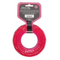 This is a Scream Xtreme Treat Tyre X-Large in Loud Pink. The Scream Xtreme Treat Tyre in X-Large Loud Pink is a tough, long-lasting chew toy built for extreme chewers. Made from Thermoplastic Rubber (TPR), it's lightweight, weather resistant, and virtually indestructible. Use it as is or fill the inside with paste for an extra challenge. It also floats, making it great for beach and pool play. Vanilla scented.
