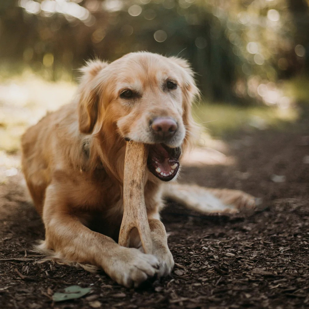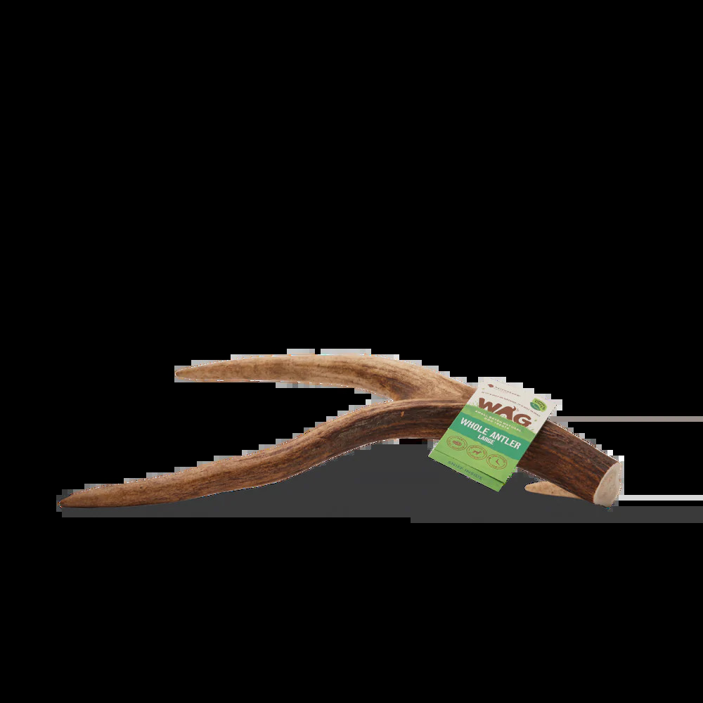 The WAG Large Whole Deer Antler Dog Treat is for strong chewing dogs. The large deer antler is between 140 grams and 190 grams. Deer antlers come from New Zealand are 100% hard deer antler.