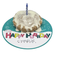 - Includes compostable cake pan, tuna-flavoured mix, goat’s milk powder icing, sprinkles and candle