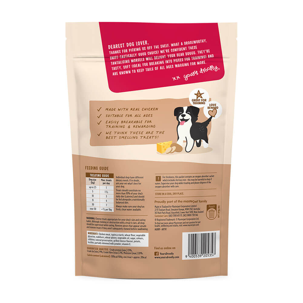Yours Droolly Double Delights – Potato & Cheese Dog Treats are soft, tasty treats made with real chicken, designed to keep tails wagging and noses sniffing for more. Ideal for breaking into smaller pieces, these treats are perfect for training or rewarding your dog. With a mouthwatering Potato & Cheese flavour, they are one of the best smelling and tasting treats your dog will ever enjoy.