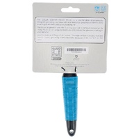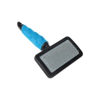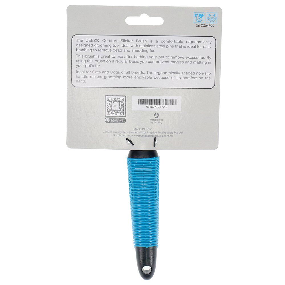 This is the Zeez Comfort Slicker Brush in Large. This ergonomically designed grooming tool features stainless steel pins that are ideal for daily brushing to remove dead and shedding fur. It is also great to use after bathing your pet to remove excess fur. Regular use helps prevent tangles and matting, keeping your pet's coat in excellent condition. Suitable for small animals, cats and dogs of all breeds.