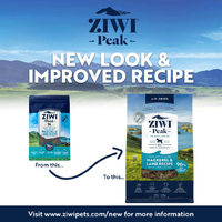 The 1kg Ziwi Peak Air Dried Mackerel & Lamb food is made from sustainably-caught fish from the pristine blue waters of New Zealand, rich in Omega 3 and 6 fatty acids. Ziwi Mackerel & Lamb is sourced only from local New Zealand farms, ensuring the animals are free-ranging, grass-fed and finished. The air-dried recipes are 96% meat, organs and bone, including 3% New Zealand Green Mussel for natural glucosamine and chondroitin for joint health, and 7% species-specific tripe for added palatability and digestive benefits, kelp is also added as a natural vitamin and mineral source.